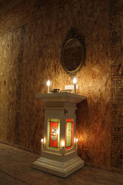 Scissors were suspended from the ceiling of the gallery, creating an ominous atmosphere and immediately making the viewers question their trust in the space.